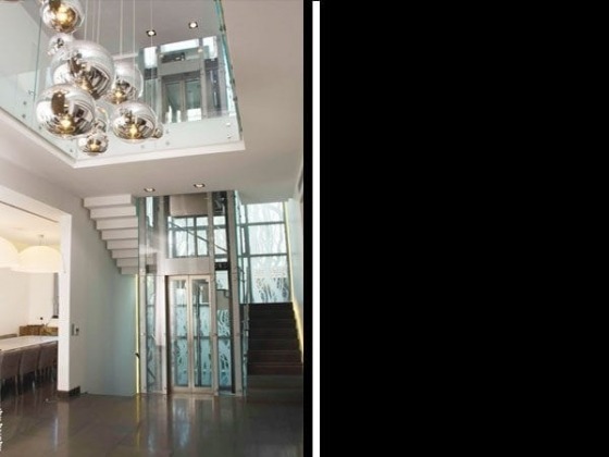 זכוכויות לפיר מעלית על קונסטרוקציית נירוסטה. הזכוכית רבודה ומחוסמת לפי תקן.