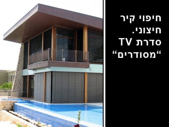 חיפוי קיר מזכוכית FANCY WHITE מסדרת CLEAR LINE. סטריפ מקיף בנין. הבית המופיע בסדרת הטלוויזיה “מסודרים”