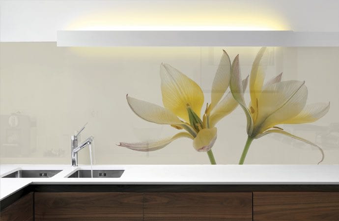 חיפוי קיר מזכוכית מודפסת בדוגמת פרחים