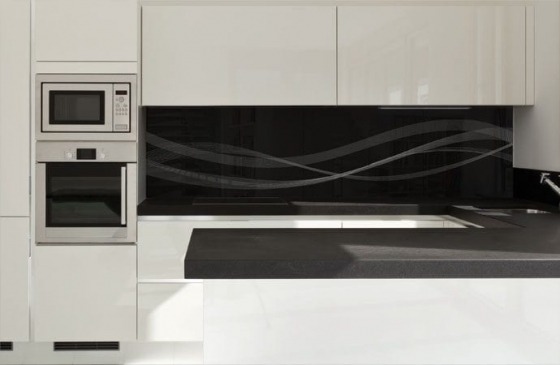 חיפוי קיר מזכוכית מודפסת שחורה עבור המטבח