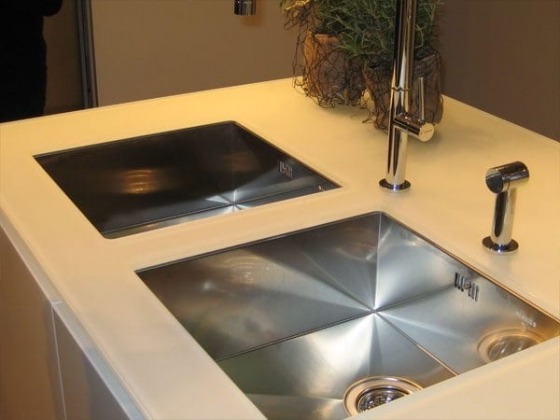 תמונה ראשית– משטח עבודה עם חיתןך CNC בזכוכית לשילוב כיור תחתי בהדבקה.