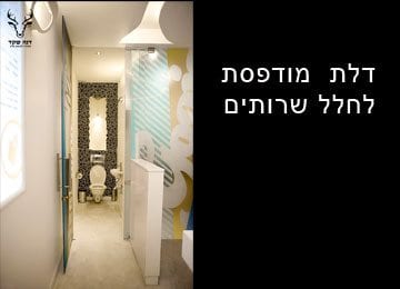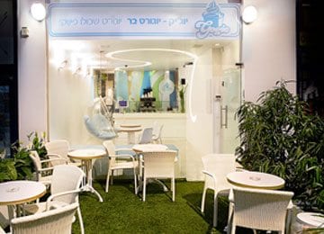 יוגיק יוגורטיה – אשדוד. קיר מפריד בין חלל מסעדה למטבח ושרותים. הקיר מזכוכית בעובי 10 מ”מ מודפסת. גודל מפתח 5/2.5 מטר. שתי דלתות זכוכית למעבר- האחת למטבח והשניה לתא שרותים.